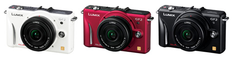 実勢価格は、ボディ単体の「LUMIX DMC-GF2」が6万円前後、ボディにパンケーキレンズが付属する「LUMIX DMC-GF2C」が8万円前後、ボディにパンケーキレンズと標準ズームレンズが付属する「LUMIX DMC-GF2W」が9万円前後の見込み。カラーは、「LUMIX DMC-GF2」がエスプリブラック、「LUMIX DMC-GF2C」「LUMIX DMC-GF2W」がエスプリブラック、ファインレッド、シェルホワイト。