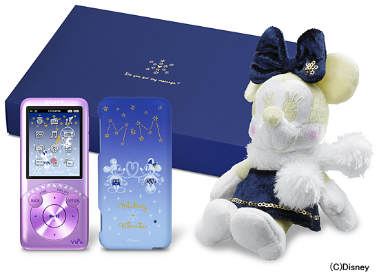 購入時に「ソニーストア」の専用ページからアップロードした写真を本体にインストールして届ける。アップロードする写真は、ミッキーマウスとミニーマウスのかわいらしいスタンプアイコンやスタンプフレームでデコレーションすることもできる。2機種合わせて500台の限定販売。価格は1万980円。