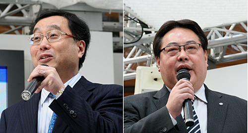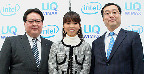 (左から)UQコミュニケーションズの野坂章雄社長、インテルの宗像義恵取締役副社長