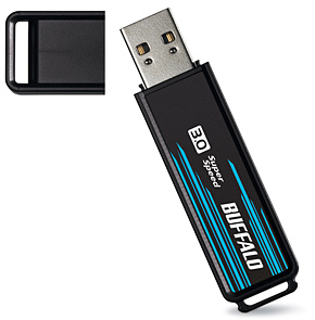 最大転送速度5Gbps(規格値)の高速規格USB3.0に対応。独自の高速化ソフト「バッファローツールズ」も搭載し、USB3.0と独自技術「TurboPC」によって、USB2.0接続の従来製品「RUF2-KE」の約3倍(8GBモデルは約2.3倍)の転送速度を実現した。