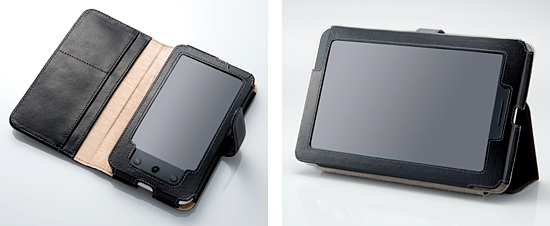 本革のケースはスリムなデザインで、装着したまま液晶画面の操作が可能。本体をキズや汚れから保護することに加え、使い込むほどに味わいを深める。「AVSH-GPS10LT」は、ケース内側にメモなどがはさめるポケット付きの手帳タイプ、「AVSH-GPL10LT」はケース背面のスタンドで横向きに立てて使用できるスタンドタイプ。