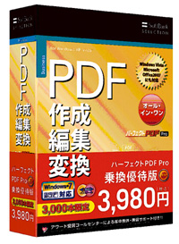 BBソフトサービスは、「SoftBank SELECTION」ブランドから、PDFの作成・変換・編集ソフト「SoftBank SELECTIONパーフェクトPDF Pro乗換優待版(Windows 7対応版)」を、3000本限定で12月3日に発売する。価格は3980円。対応OSはWindows 7/Vista/XP。