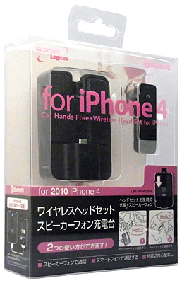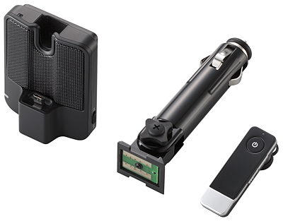 Bluetooth搭載の携帯電話やスマートフォンをワイヤレス接続してハンズフリー通話ができるヘッドセットと、スピーカーフォンのセット。ワイヤレスヘッドセットを耳に装着して通話する方法と、車のシガーソケット電源を使って接続したスピーカーで通話する方法の二通りの使い方ができる。