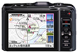 11月26日発売の「EX-H20G」は、GPS機能とモーションセンサーによる自律測位を組み合わせた機能「ハイブリッドGPS」を搭載し、屋外だけでなく屋内での位置情報の測位を実現。日付や時刻、地名などの位置情報付きの写真を撮影することができる。モニタに表示する地図上には、自分の居場所や撮影した写真・動画を表示できる。