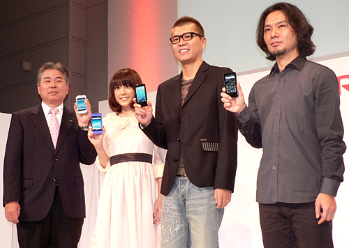 左から、シャープの大畠昌巳執行役員、福田沙紀さん、おちまさとさん、守屋健太郎さん