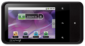「Creative ZiiO」「Creative ZEN Touch 2」は、OSにAndroidを採用し、音質にこだわったエンタテインメント端末。音楽や写真、ビデオの再生に加え、無線LANでインターネットに接続し、ウェブの閲覧やメール送受信ができる。さらに、Androidアプリ紹介サービスや開発者などから、Androidアプリやゲーム、電子書籍などをダウンロードして楽しむこともできる。ただし、Googleが提供するAndroid マーケットには対応していない。