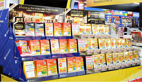PCソフト売り場で「マイクロソフト オフィス ホーム アンド ビジネス 2010 ゴールド パック」を前面に押し出すビックカメラ有楽町店本館