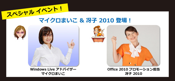 11月27日からは、Office 2010のプロモーションキャラクター「冴子 2010」とWindows Live アドバイザーの「マイクロまいこ」をゲストに、販売店で「Windows 7&Office 2010の10分マスター講座」を実施。年末に向けて、個人ユーザーへの訴求を強化している。マスター講座は、ビックカメラ有楽町店本館でも、12月18日、19日に実施する。
