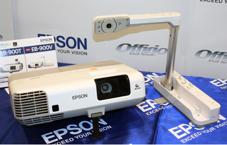 「EB-900V」は、書画カメラ「ELPDC06」をUSBケーブルでつなぐだけで、PC無しで実物投映ができる。実勢価格は17万円台後半の見込み。