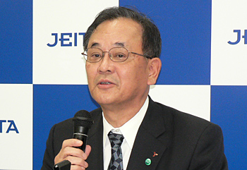 12月のエコポイント対象基準の変更を前に需要が集中した11月の薄型テレビ販売について、下村会長は「地上デジタル放送受信機の世帯普及率が100%に近づくなど、来年7月の完全移行に向けて順調に進んだ」との見解を示した。