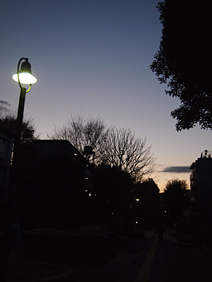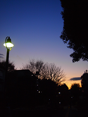色味を強調する「ポップアート」は、風景や静物など、さまざまな被写体で使うことができる便利なモードで、実際にかなり出番が多かった。例えば、朝焼けは、アートフィルターなしの状態と比べて鮮やかに変身。透き通るようなコバルトブルーの空に、黒々とした街路樹やビルのコントラストが際立つ。