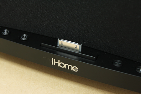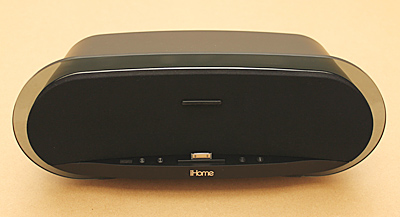 「iHome」シリーズの「iP3」は、曲線を多く使ったデザイン。前モデルの「iP1」は迫力あるイメージの外観だったが、「iP3」は女性にも好まれそうな柔らかい印象がある。ボディのサイズは幅376×高さ145×奥行き158mmで、1.47kgとコンパクトで軽量。リビングボードやラックはもちろん、ダイニングテーブルの上に置いても邪魔にならない。対応機種は、iPhoneなら3G以降、iPod touch全機種、iPod nanoの第2世代以降、iPod classicやiPod with cideoなど17モデルをサポート。ラインイン端子を備えているので、外部入力にも対応する。