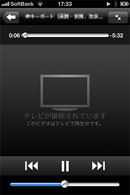 iPod/iPhone内の動画を表示するので、どんなにいいテレビでも、画質はそこそこ。解像度の低い動画を大画面で見ると、かえって内容がわからないこともある。しかし、ハイビジョンの動画なら、十分鑑賞に堪えるレベルだ。音は「iP3」から再生されるので、音質も文句なし。もちろん、音楽と同様、リモコンで動画の選択・再生などができる。