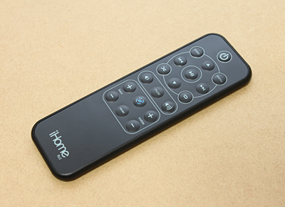離れた場所から操作できるように、リモコンが付属。本体ボタンの操作はもちろん、ミュートや曲のスキップ、イコライザーなどを利用することができる。iPod/iPhoneで楽曲を選択する画面を表示していれば、リモコンのボタンで操作することもできる。
