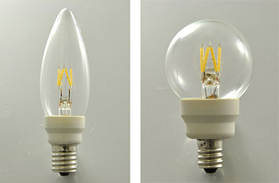 光の質や色に加えて、ランプの形状を従来の白熱電球に近づけた。ラインアップは、外径32mmのシャンデリア球1タイプとグローブ球2タイプ。グローブ球は外径50mmと40mmの2種類。口金形状は、従来の白熱電球用ソケットで使用できるE17とE12。すべて価格はオープンで、実勢価格は7000円前後の見込み。