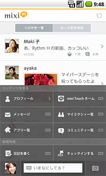ミクシィ、Android端末向け「mixi」アプリ、携帯3キャリアに対応