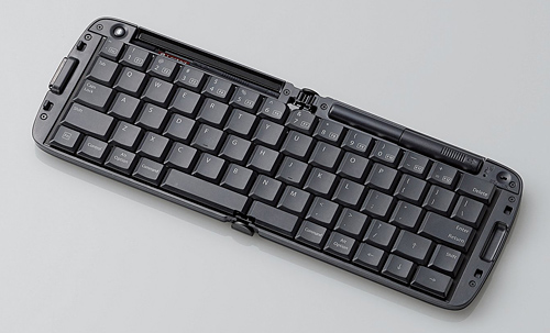 コンパクトに二つに折りたたんで持ち運べる英語65キー配列のキーボード。キースイッチは多くのノートPCが使用するパンタグラフ方式で、キートップには見やすいオリジナルフォントを使用した。キーピッチは18mmと大きく、快適にタイピングできる。