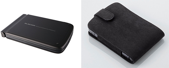 キーボードを折りたたんだ状態(左)、スエード調の専用ケース(右)