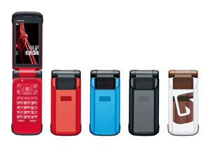 カラーは、RED、BLACK、BLUE、BURTON WHITEの4色。BURTON WHITEは、スノーボードのトップブランド「BURTON」とのコラボレーションモデルで、フロントパネルにはBURTONのロゴ、決定キーには雪山をデザインするなど、細部までこだわった。待受やメインメニュー、メール送受信などの各種画面、電池/電波マークやマチキャラなどBURTONオリジナルコンテンツも内蔵する。サイズは高さ約113×幅約51×厚さ約19.9mm(最厚部約23mm)、重さは約158g。
