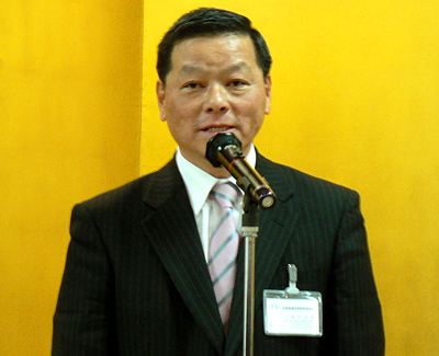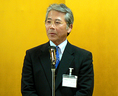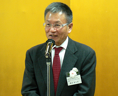 懇親会の冒頭、奥田理事長が「今日ここにいるメーカーの方々のように、世界に向けていいものを作ってください」と、メッセージを送った。