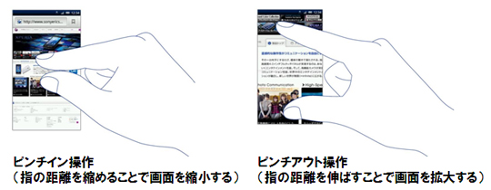 バージョンアップデータを適用すると、ピンチイン(2本の指を画面上に乗せ、その指の間隔を縮める)操作による画面の縮小、ピンチアウト(同様に画面に指を乗せ、指の間隔を広げる)操作による画面の拡大などのマルチタッチ操作に対応する。