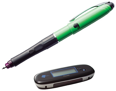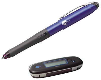 「airpen」は、紙に書いた文字や図などをそのままデジタル化して、PCにデータを保存できるデジタルペン。「airpenPocket」では無線通信方式Bluetoothに対応。従来はUSBケーブルでPCにデータを伝送していたが、新製品ではBluetooth対応PCにワイヤレスでデータを送信できるようになった。