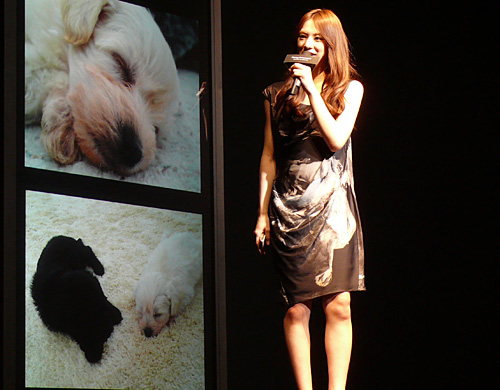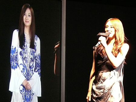 「Cyber-shotケータイS006」に見立てたディスプレイに映る等身大の北川さんがプレゼンテーション