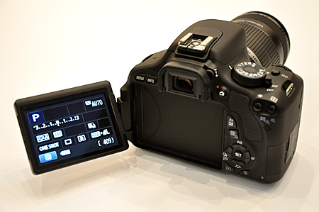 「EOS Kiss X5」は、シリーズとして初めて3.0型のバリアングル液晶モニタを搭載したモデル。角度調整ができるモニタを見ながら、ハイ/ローアングルでの撮影が簡単にできる。主に、子どもをもつファミリー層をユーザーとして想定した。