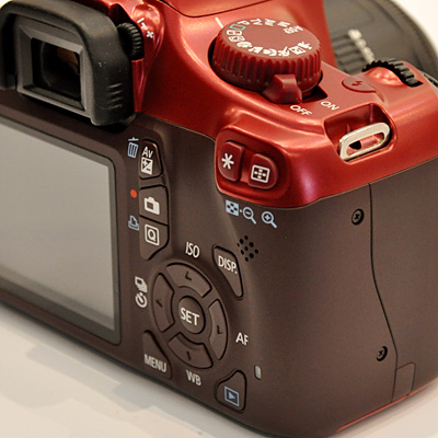 「EOS Kiss X50」は、カラーバリエーションとして一般的なブラックに加えて、レッドを揃える。コンパクトデジタルカメラからの買替え層や若いユーザーをターゲットにした。背面の各種ボタンやダイヤルをグリップのある右側に集中し、片手でボディを握っていても操作しやすくした。