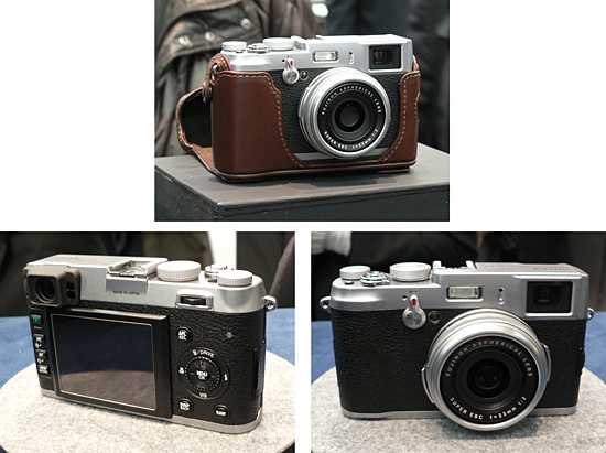 新たに投入する高級コンデジ「FinePix X100」。別売のレザーケースを装着(上)