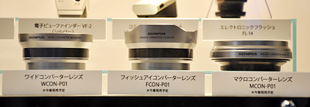 「PEN」のアクセサリとして、レンズ先端に取り付けて焦点距離が変えられるコンバーターレンズの存在も見逃せない。ラインアップは、ワイドコンバーターレンズ「WCON-P01」、フィッシュアイコンバーターレンズ「FCON-P01」、マクロコンバーターレンズ「MCON-P01」の3モデル。11年春の発売予定だ。