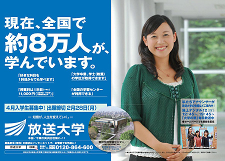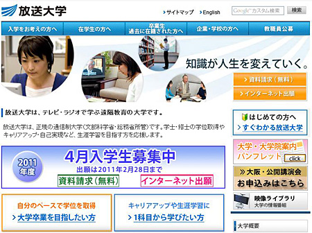 放送大学、2011年の4月入学生のインターネット出願受付中、2月28日まで