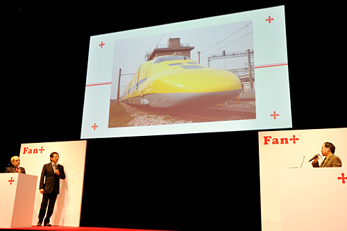 NTTプライム・スクウェアとネコ・パブリッシングの「鉄道ホビダスEX」では、ネコ・パブリッシング『レイル・マガジン』編集長の名取紀之さんが、赤や黄色の珍しい新幹線の写真を見せながら、コンテンツについて語った。