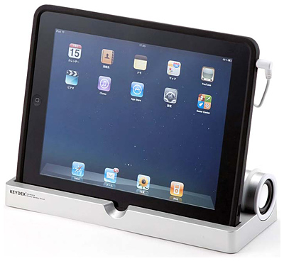 最大出力1.5W×2のステレオスピーカーを搭載するiPadスタンド。小型ボディながら迫力のサウンドを再生し、動画などのコンテンツをクリアな音質で楽しめる。スピーカーは、iPadの3.5mmステレオミニプラグに接続して使用する。