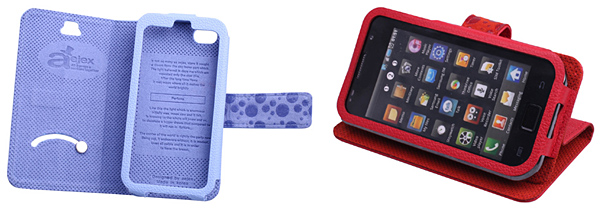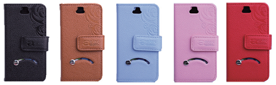 カラーは、iPhone用の「AS-AJIP4」、GALAXY S用の「AS-AJGXS」ともに、ブラック、ブラウン、ブルー、ピンク、レッドの5色。内側の素材には柔らかいChamudeを使用し、ケースの色とコーディネートした。液晶保護フィルムが付属する。