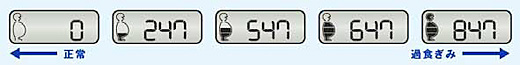 さらに、食べ過ぎかどうかを判定する新しい単位として「meal(ミール)」を設定。「QM-300」は、0-1000ミールの範囲を計測・表示する。