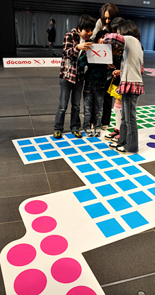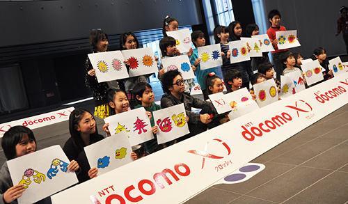 花粉の視覚化に携わったアートディレクターの秋山具義さんは、「通常、花粉は目に見えないが、それを見えるように仕組みを考えた。子どもたちには花粉のイメージを自由に想像してもらい、キャラクターに描いてもらった」という。また、「映像の切り替わりの早さには感動しました」と「Xi」のデータ通信の処理性能に驚いていた。