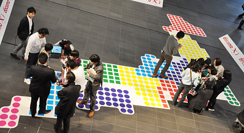 会場の秋葉原UDX「アキバ・スクエア」の床一面に、巨大な日本地図を用意。日本地図は、全国を11地区をマークと色で区分している。