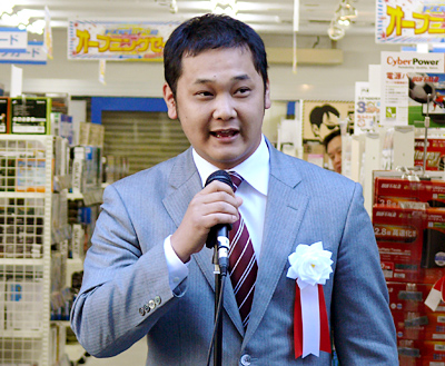 店長は、秋葉原本店で店長を務めた経験などを持つ亀田光功氏。亀田店長は、「身が引き締まる思い」と胸の内を語り、「日本一のパーツショップを目指す」と意気込みをみせた。