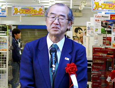 また、秋葉原電気街振興会の小野一志会長(オノデン代表取締役)も参加し、「歩行者天国が復活するなど、秋葉原に追い風がきている」と訴え、「サードウェーブさんが隆盛することを願っている」と期待を表明した。さらに、インテルや日本AMD、日本マイクロソフトなども祝意を表した。