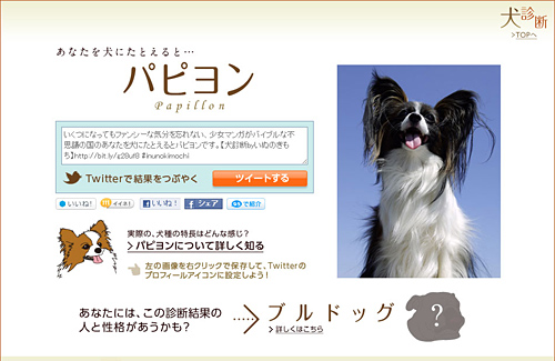 「犬診断」の診断結果の例