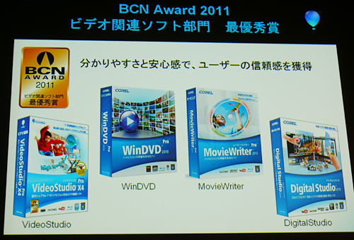 「BCN AWARD 2011」ビデオ関連ソフト部門を受賞したことをアピール