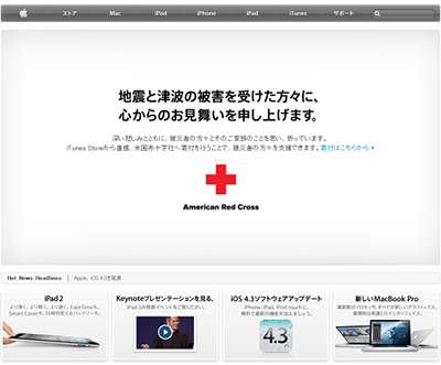 アップルのウェブサイトのトップページでも、寄付を募っている