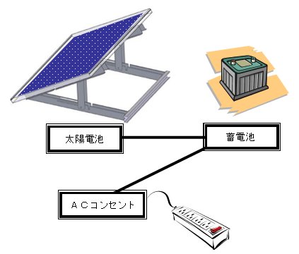「被災地向けソーラー発電システム」は、シャープの太陽電池と新神戸電機の蓄電池、ACコンセントを組み合わせた独立型の太陽光発電システム。太陽光で発電した電力で、携帯電話などの充電ができる。