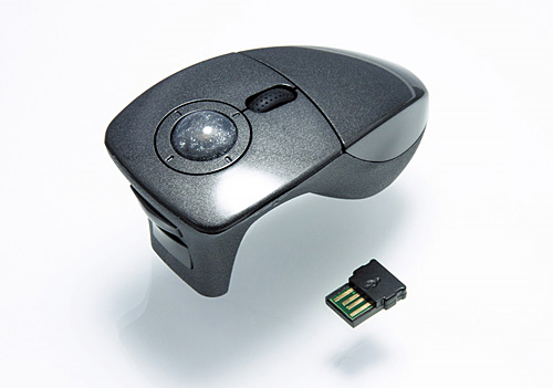 光学式トラックボールと5ボタン、スクロールホイールを備えた次世代型“ごろ寝マウス”。一般のマウスと異なり、本体を動かす必要がなく、親指を動かすだけでパソコンを操作できる。