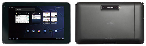 マルチタッチ対応のタッチパネル式8.9型画面をもつタブレット型端末。OSにAndroid 3.0を搭載したほか、1GHzのデュアルコアプロセッサを装備し、インターネット閲覧などが快適に楽しめる。ステレオスピーカー付きで迫力のある臨場感溢れる映像が楽しめるほか、別売のHDMIケーブルを使って、映像をテレビに出力することができる。