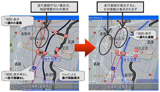 なお、クルマの走行実績がある道路でも、現在通行できることを保証するものではない。例えば、緊急交通路に指定されているなど、通行が規制されている可能性がある。パイオニアでは、サービスを利用するときは、国土交通省、警察、東日本高速道路などで最新の情報をチェックすることを呼びかけている。