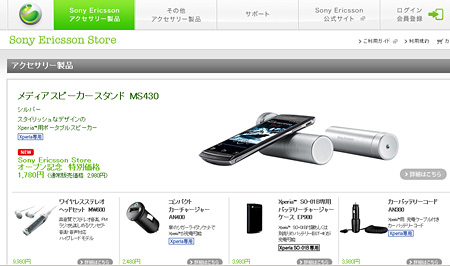 ソニー・エリクソン、アクセサリのオンラインストア「Sony Ericsson Store」オープン