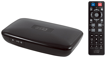 動画など、再生するデータを保存したHDDやUSBメモリなどを本体のUSBポートに接続し、電源を入れると、再生可能なフォーマットを自動で認識し、ホーム画面に表示。大きな文字とアイコンを使ったホーム画面のメニューから再生したいファイルを探し、付属のリモコンを使って簡単に再生できる。1080p出力によるフルHD動画の再生に対応。HDMI出力端子に加え、コンポジット出力端子も搭載する。