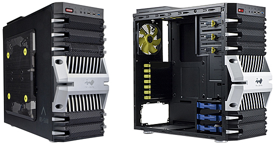 戦車をモチーフにした重厚なフロントフェースデザインで、前面に集中配置したI/OポートにUSB3.0ポート1基を搭載。内部には、320mmクラスのハイエンドビデオカードを内蔵できる。